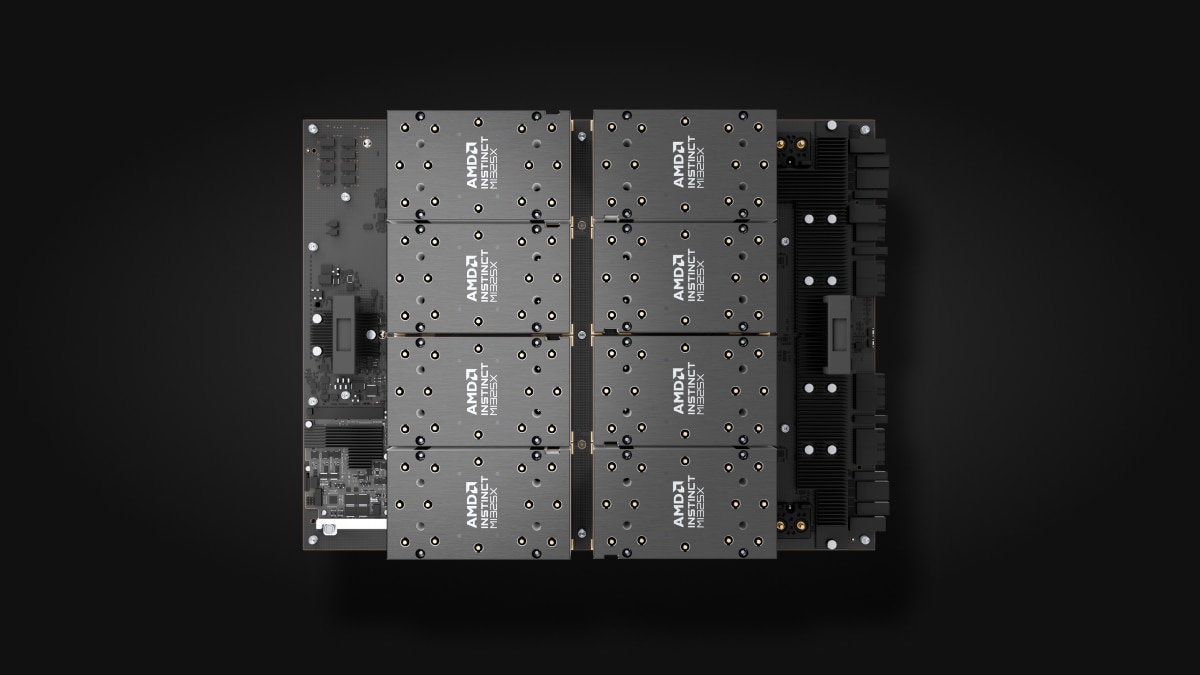Includes eight (8) Instinct MI355X or MI350X GPUs in a single UBB board form factor for maximum compute performance