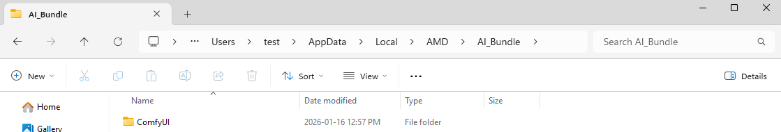 - Navigate to the folder location C:\Users\[your username]\AppData\Local\AMD\AI_Bundle\