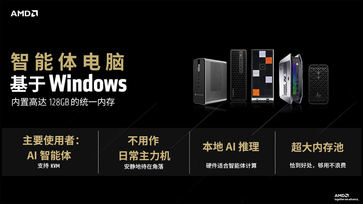 搭载AMD锐龙AI Max+处理器(包括AMD锐龙 AI Max+ 395)的系统,特别适合成为智能体电脑。它们拥有运行复杂本地模型所需的强大算力,具备持续稳定运行的高效能,并且拥有能够支持并行、多智能体工作负载的系统架构,而这正是定义未来计算形态的关键。