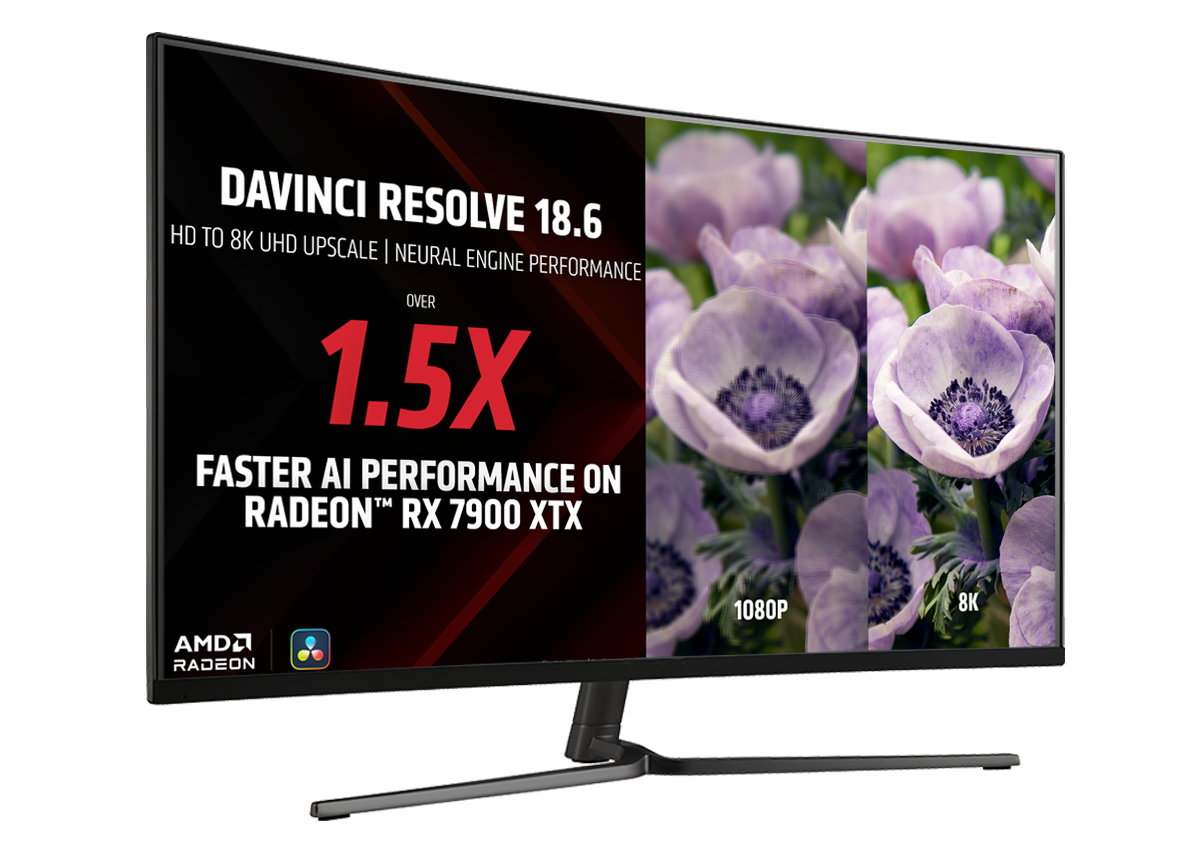 AMD 和 Blackmagic Design 密切合作,打造优化机器学习管线,通过 AMD Radeon 显卡全面加速 DaVinci Resolve 18.6 的 AI 工作负载,使得多项用户喜爱的 AI 功能都实现了显著的性能提升1。